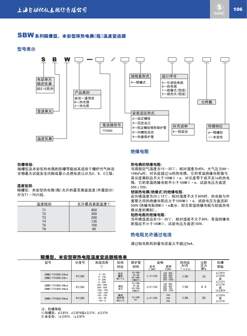 SBW系列隔爆型、本安型带热电偶(阻)、温度变送器